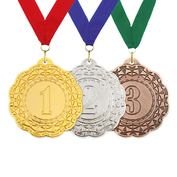 Комплект металлических медалей. Диаметр медали:42 мм.   В состав комплекта входят: три медали (Золото, Серебро, Бронза), три ленты красная, синияя, зеленая. Ленты можно заменить на другие  аналогичной цены, либо с увеличением/уменьшением стоимости комплекта.